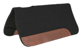 Felt Top PVC Pad with Wear Leathers Pad is made from a black felt top, ¾" thick PVC bottom and premium top grain wear leathers. Pad features a cut back style with vent holes along the spine to keep your horse dry and cool. Size: 32" x 32"