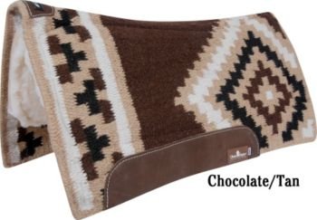 Classic Equine ESP Contoured Wool Top Saddle Pad The ultimate in the ESP line for style and performance. Unique contoured design allows the horses shoulders and hips complete freedom of movement. Top layer is 100% New Zealand wool blanket that looks great for years to come. 1/2" memory foam middle layer is extremely conforming and temperature sensitive. It continuously molds and conforms to the shape of the back then rebounds to its original shape when pressure is removed. This minimizes pressure points and relieves body stress. It is open cell, allowing airflow through the cells and pulling sweat away from the horse. 5/8" orthopedic grade felt bottom soaks up moisture, allowing heat to dissipate away from your horses back. It conforms while maintaining its density, providing excellent shock absorption. This is washable so sweat and grime can be washed away as needed. Size: 34"x 38"